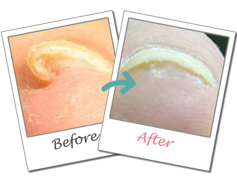 このケースは巻き爪初期段階です。 ご自身では巻き爪とはわからない事が多いようです。この方はフットケアのカウンセリングにて気付かれ、巻き爪の施術を始められました。 この場合は(右・左)の両方を施術しました。